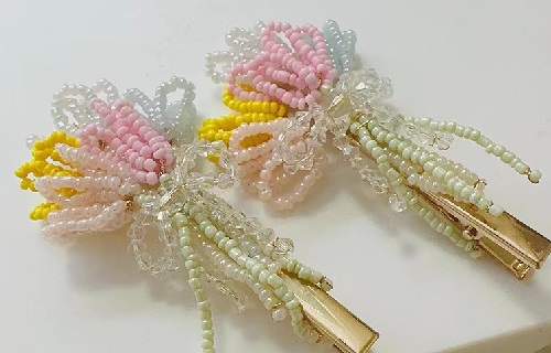圖為串珠米珠繡純手工產(chǎn)品剪影